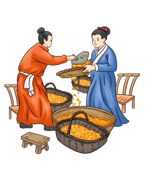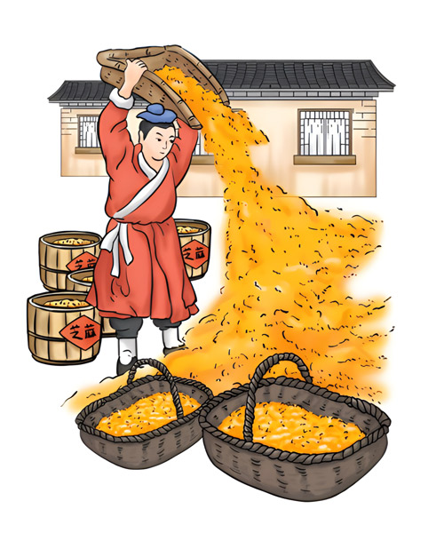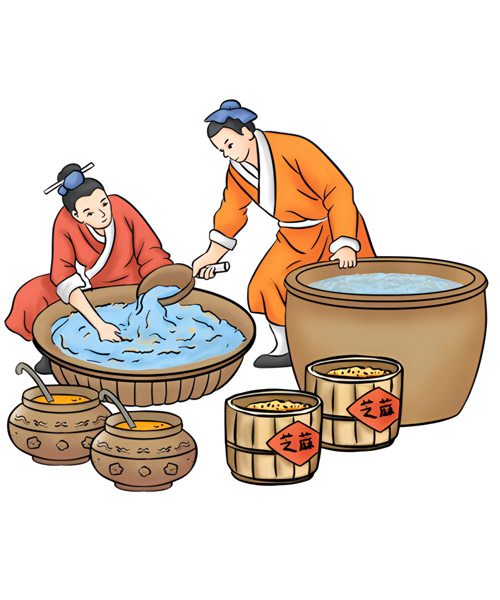 • 漂洗后的芝麻,以鐵鍋碳火慢炒至香味溢出。其中炒芝麻的手法、火候及加料工藝等,都以獨(dú)特的秘訣形式由師徒間代代傳承。